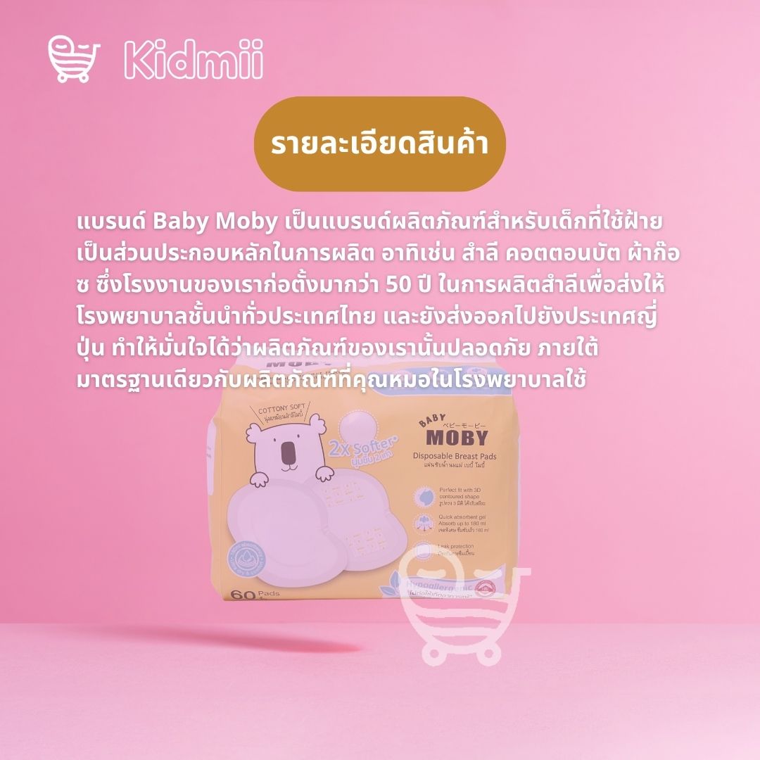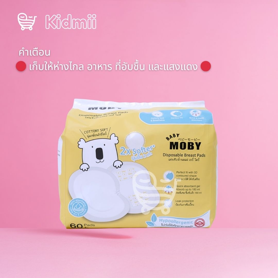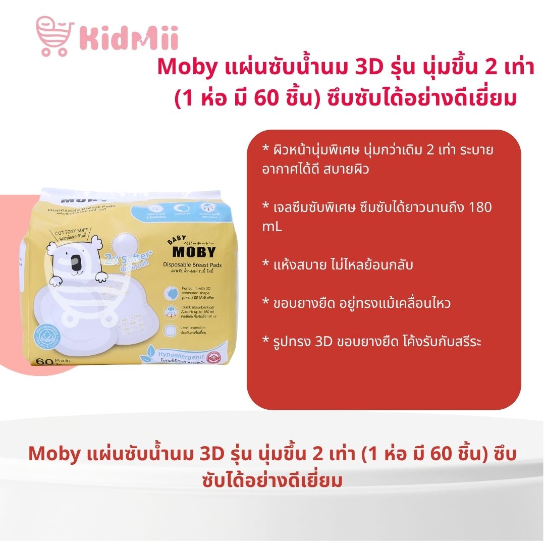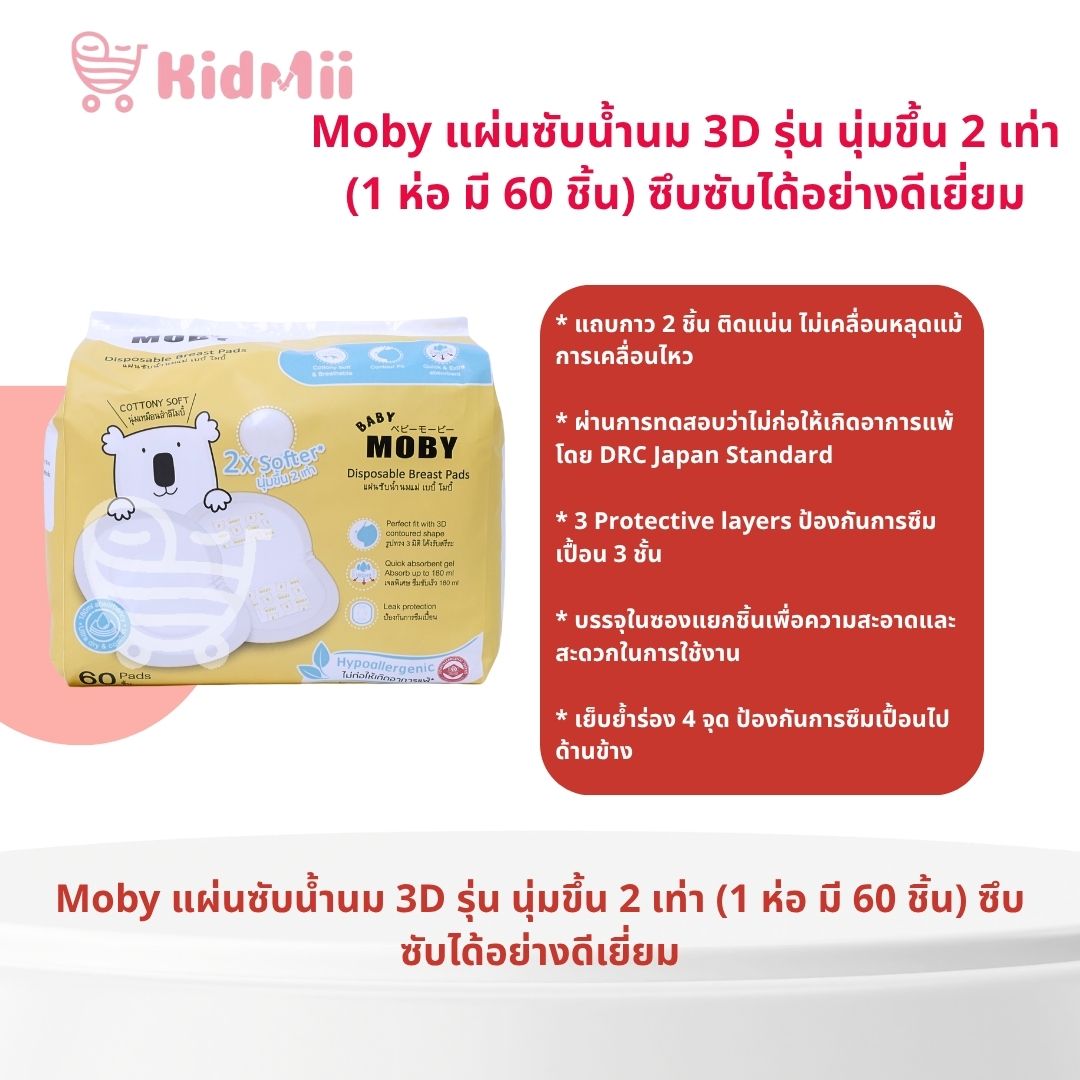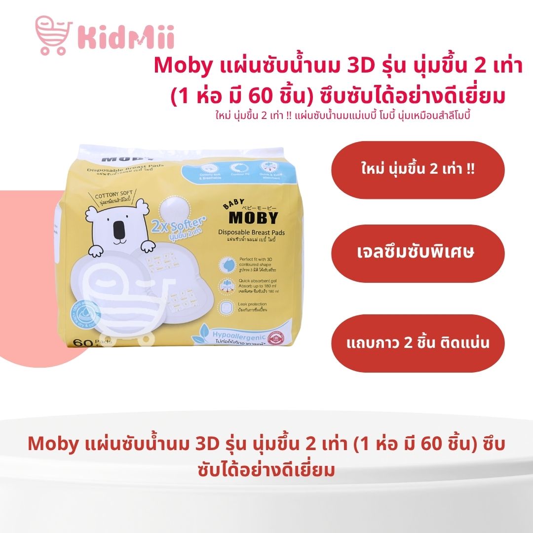 Moby แผ่นซับน้ำนม 3D รุ่น นุ่มขึ้น 2 เท่า (1 ห่อ มี 60 ชิ้น) ซึบซับได้อย่างดีเยี่ยม