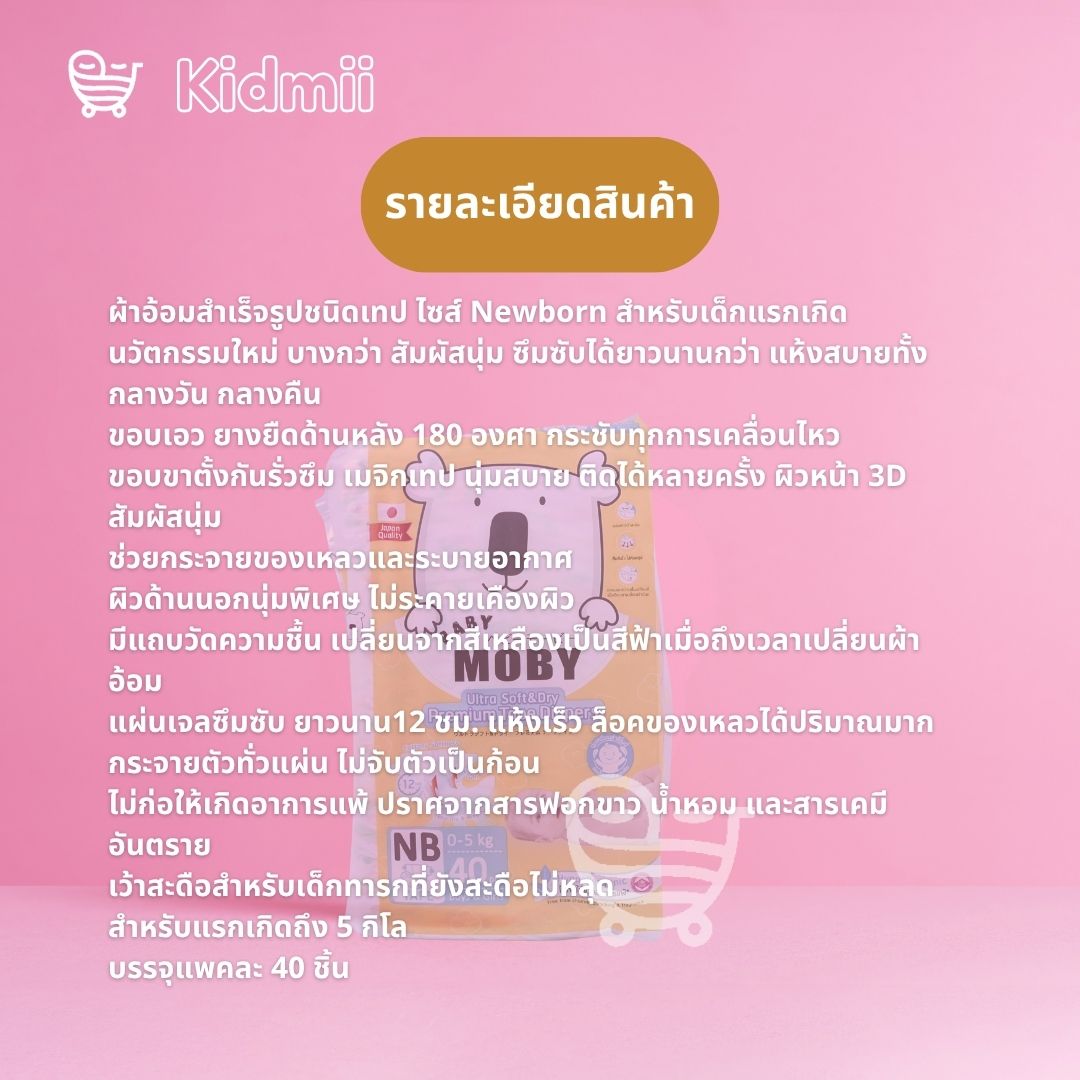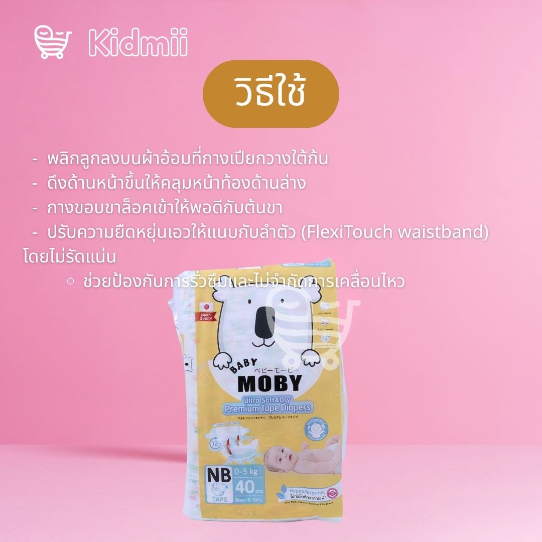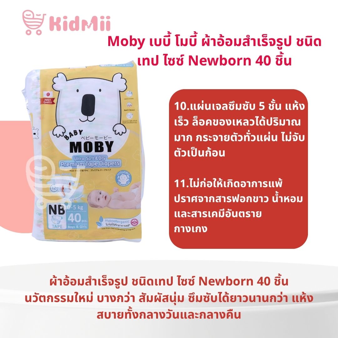 Moby ผ้าอ้อมสำเร็จรูป ชนิดเทป ไซซ์ Newborn 40 ชิ้น