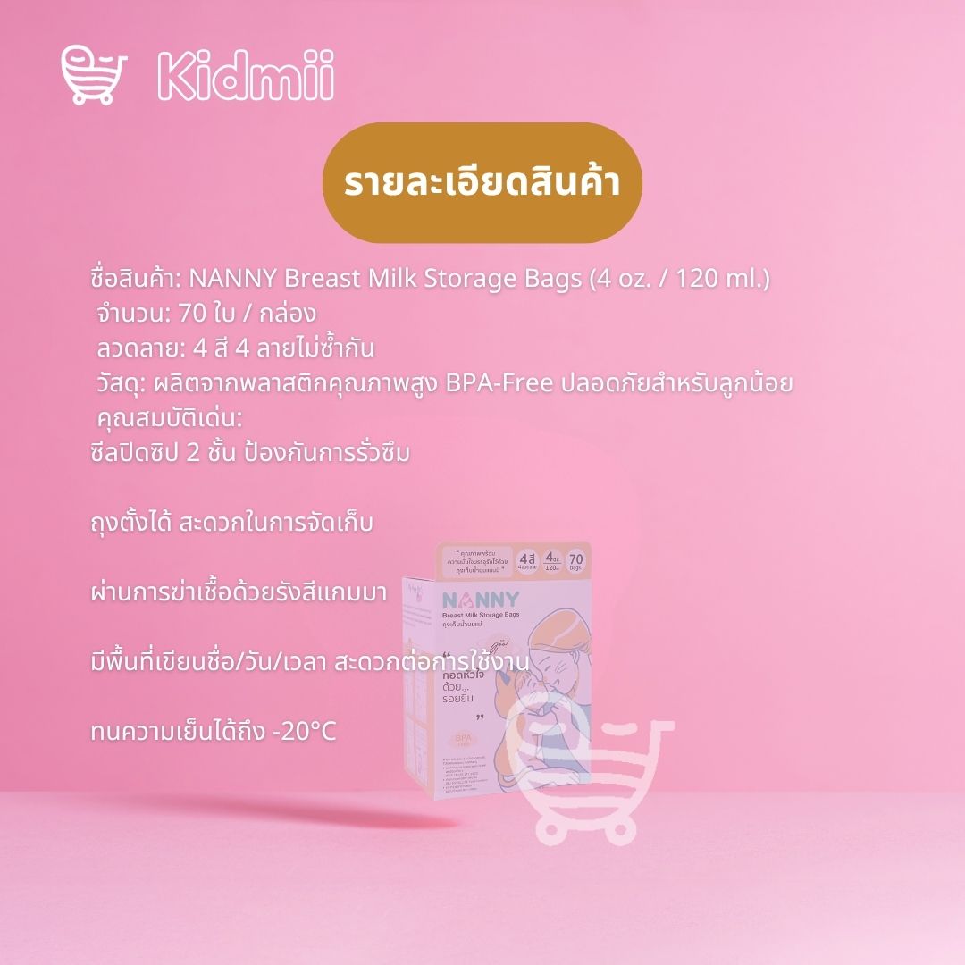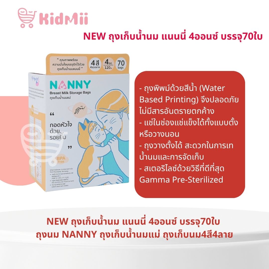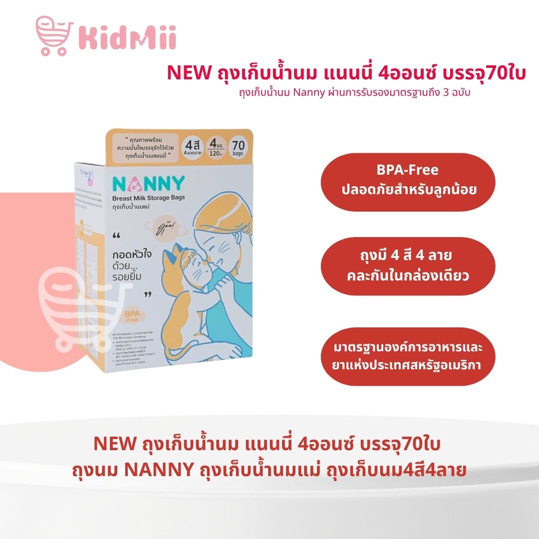NEW ถุงเก็บน้ำนม แนนนี่ 4ออนซ์ บรรจุ70ใบ ถุงนม NANNY ถุงเก็บน้ำนมแม่ ถุงเก็บนม4สี4ลาย