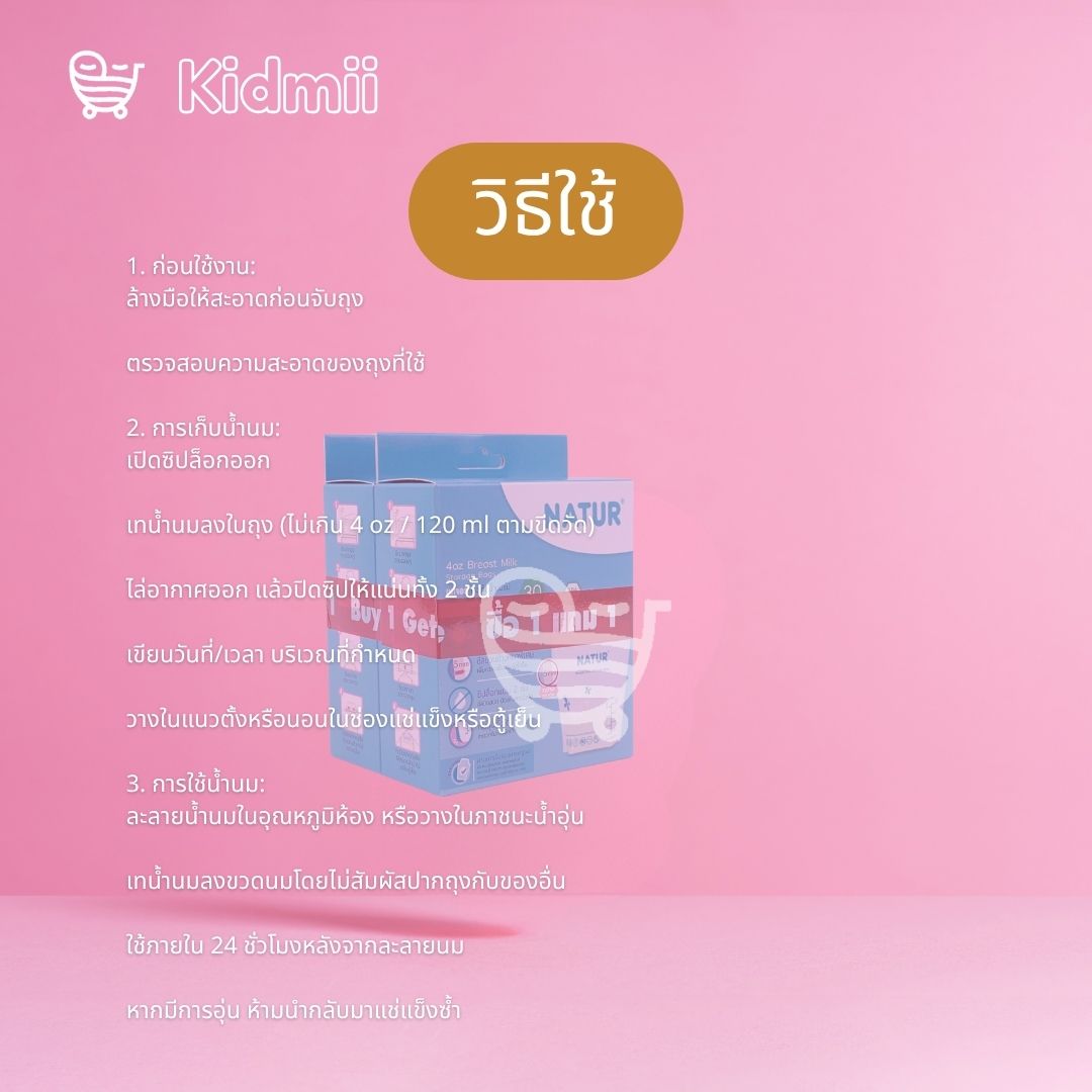 ถุงเก็บน้ำนมแม่ Natur (นาทูร์) 4 ออนซ์ (ขนาด 120 ml.) 1 แถม 1