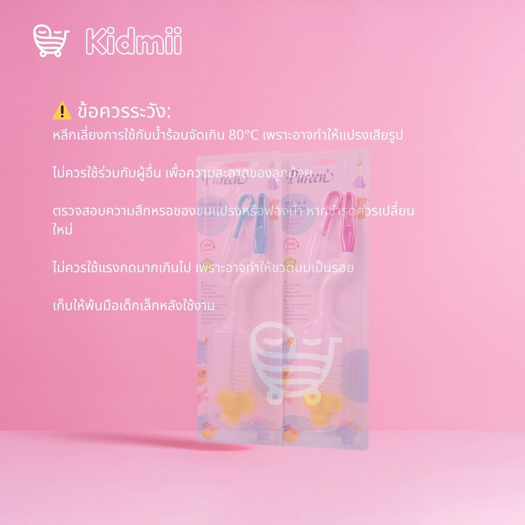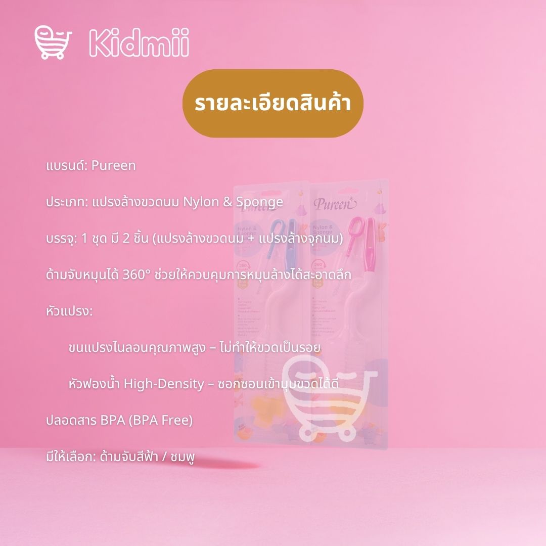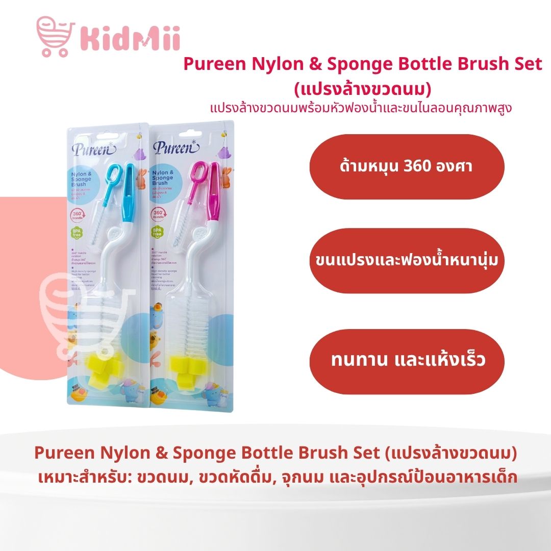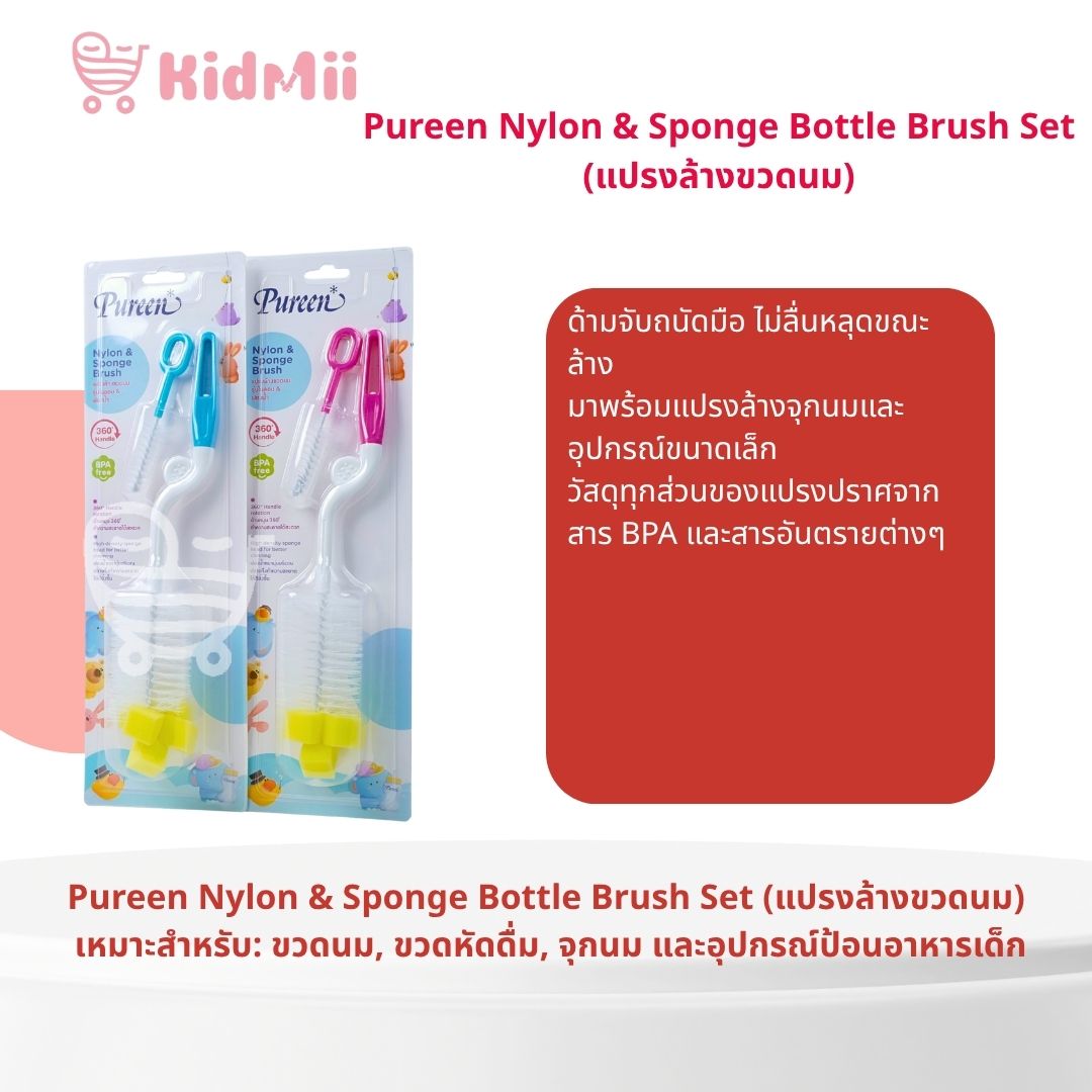 Pureen Nylon & Sponge Bottle Brush Set (แปรงล้างขวดนม) สีฟ้า สีชมพู