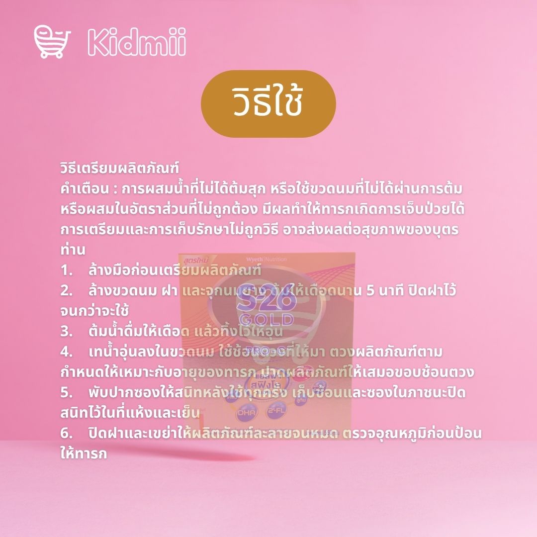 คำเตือน : การผสมน้ำที่ไม่ได้ต้มสุก หรือใช้ขวดนมที่ไม่ได้ผ่านการต้ม หรือผสมในอัตราส่วนที่ไม่ถูกต้อง มีผลทำให้ทารกเกิดการเจ็บป่วยได้ การเตรียมและการเก็บรักษาไม่ถูกวิธี อาจส่งผลต่อสุขภาพของบุตรท่าน
