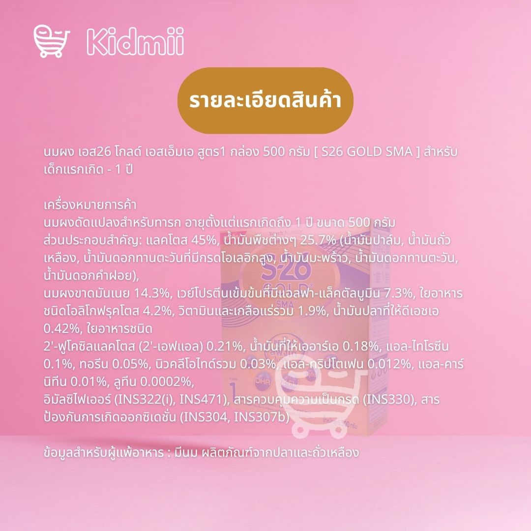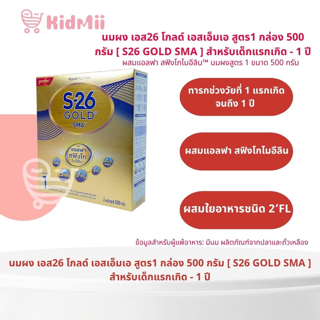 นมผง เอส26 โกลด์ เอสเอ็มเอ สูตร1 กล่อง 550 กรัม [ S26 GOLD SMA ] สำหรับเด็กแรกเกิด - 1 ปี