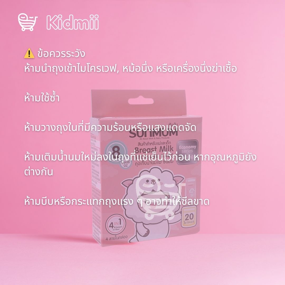 - ถุงเก็บน้ำนมแม่ ซันมัม เบบี้ ขนาด 8 ออนซ์ บรรจุ 20 ใบ/กล่อง