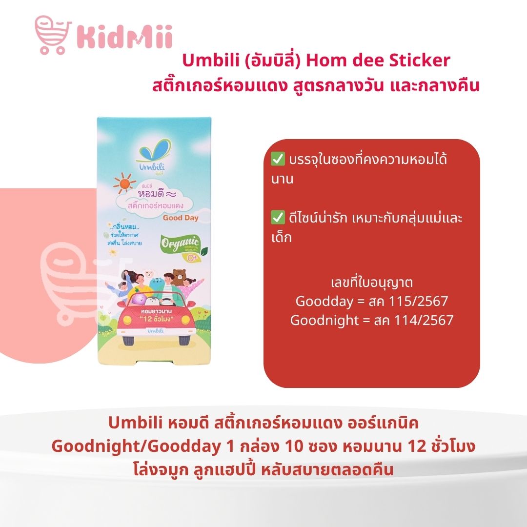 Umbili (อัมบิลี่) Hom dee Sticker สติ๊กเกอร์หอมแดง สูตรกลางวัน และกลางคืน สำหรับเด็กแรกเกิดขึ้นไป (กล่อง 10 แผ่น)