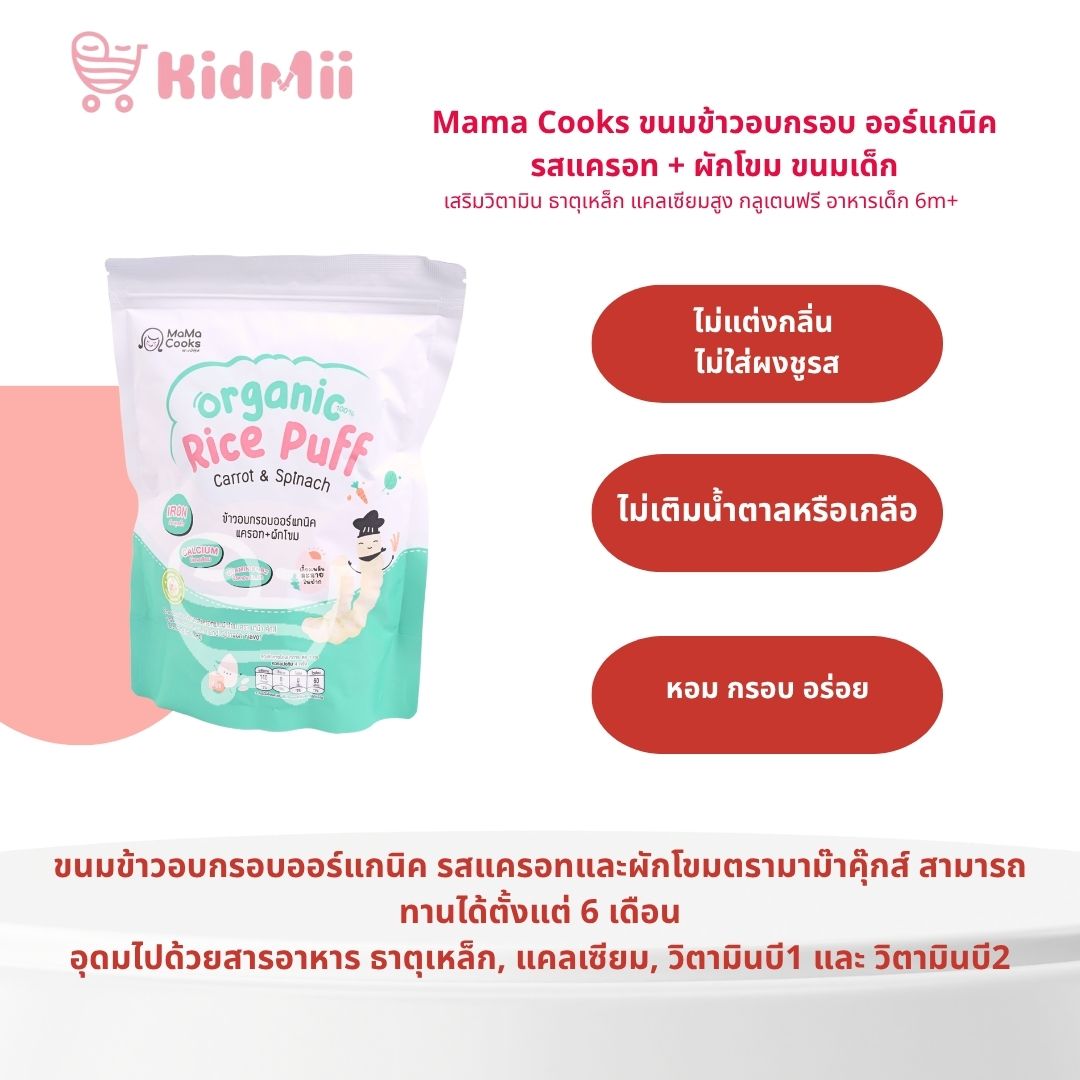 รสแครอท + ผักโขม ขนมเด็ก เสริมวิตามิน ธาตุเหล็ก แคลเซียมสูง กลูเตนฟรี อาหารเด็ก 6m+