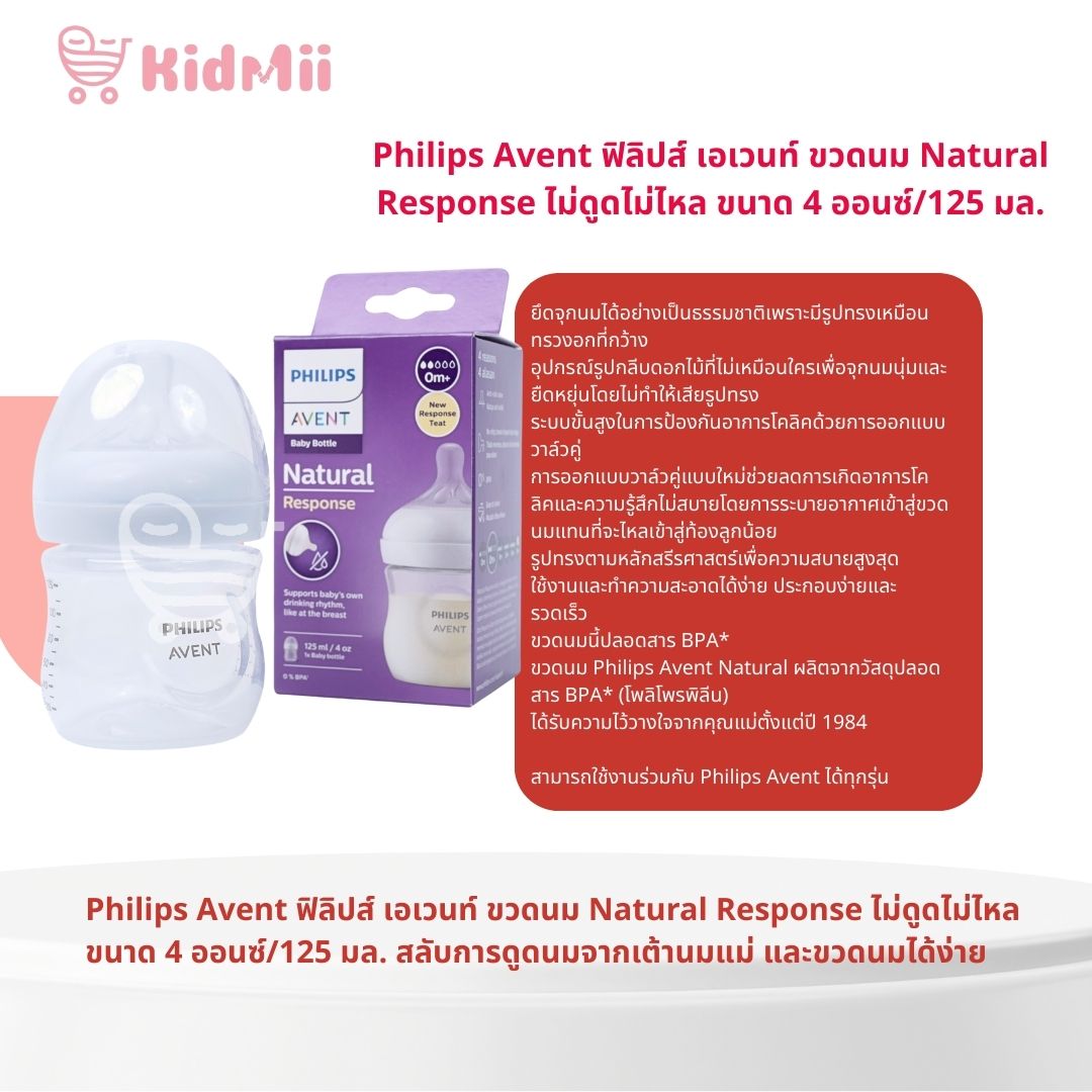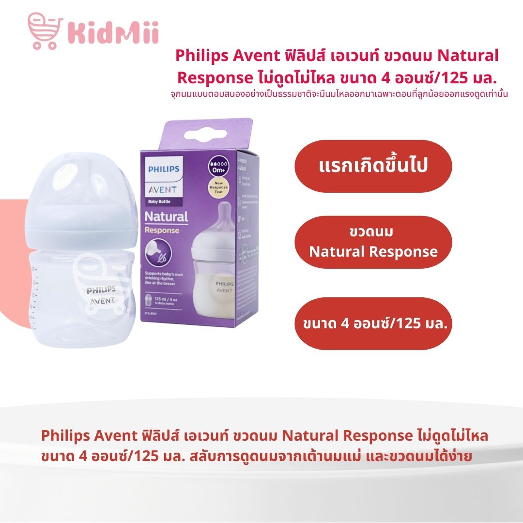 Philips Avent ฟิลิปส์ เอเวนท์ ขวดนม Natural Response ไม่ดูดไม่ไหล ขนาด 4 ออนซ์/125 มล. รุ่น SCY900/01