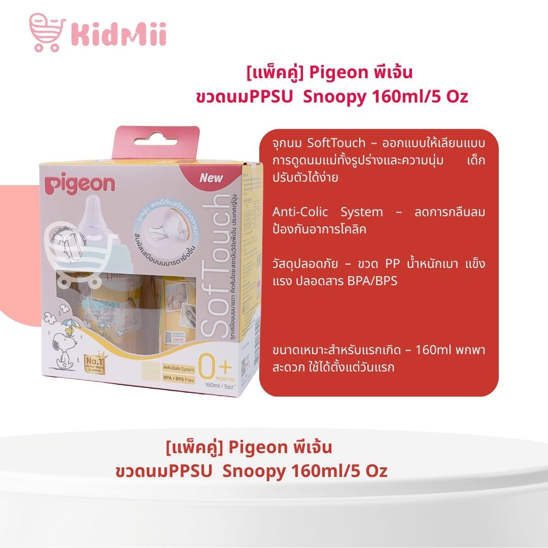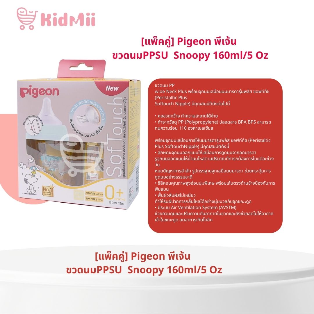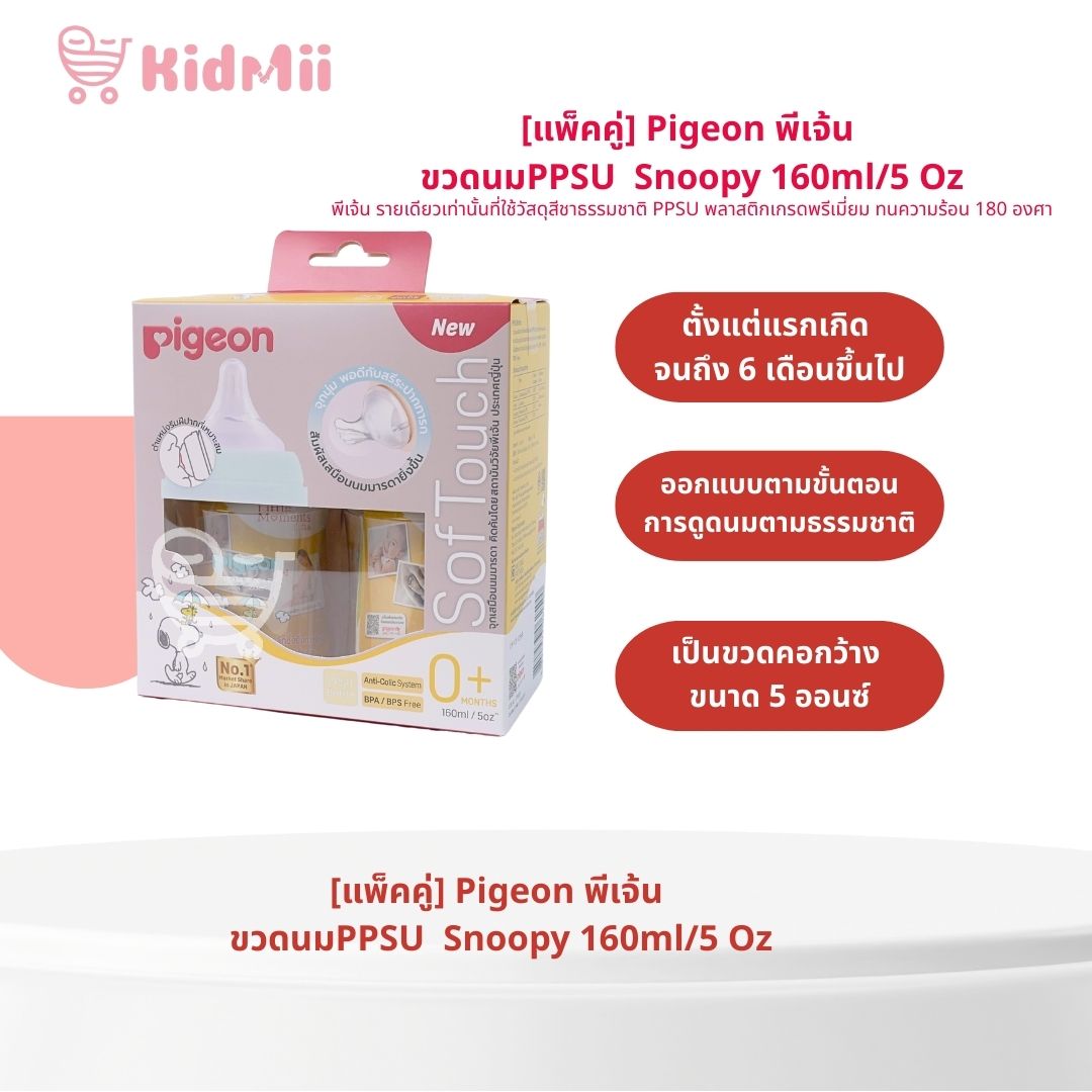 Last Updated[แพ็คคู่] Pigeon พีเจ้น ขวดนมPPSU WN3 Snoopy 5 Oz 160 ml.