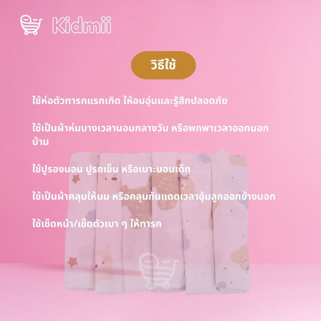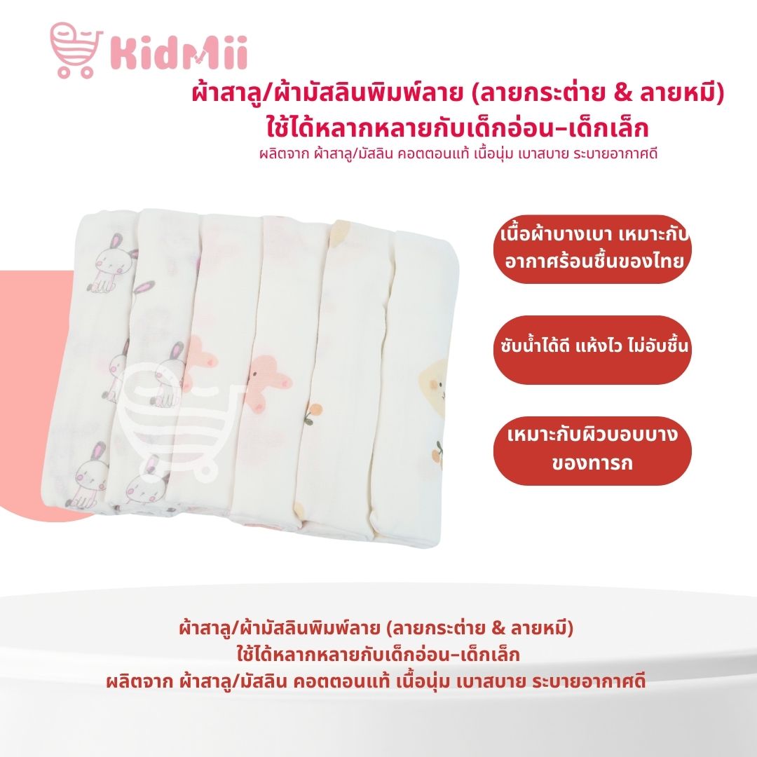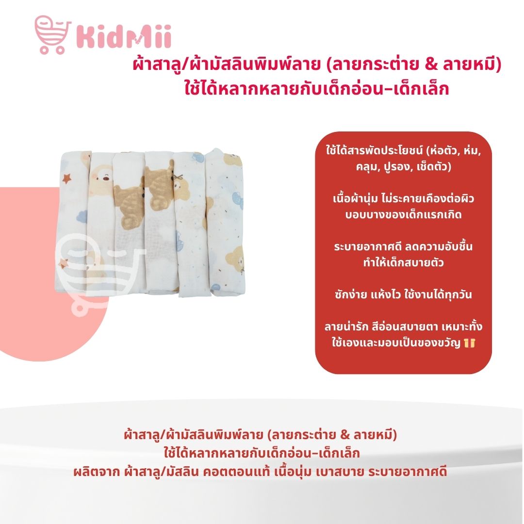 ผ้าสาลู/ผ้ามัสลินพิมพ์ลาย (ลายกระต่าย & ลายหมี) ใช้ได้หลากหลายกับเด็กอ่อน–เด็กเล็ก