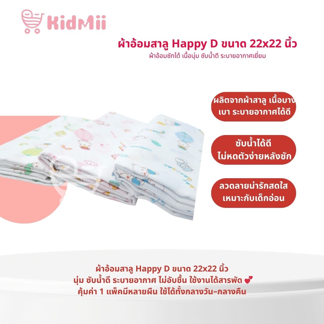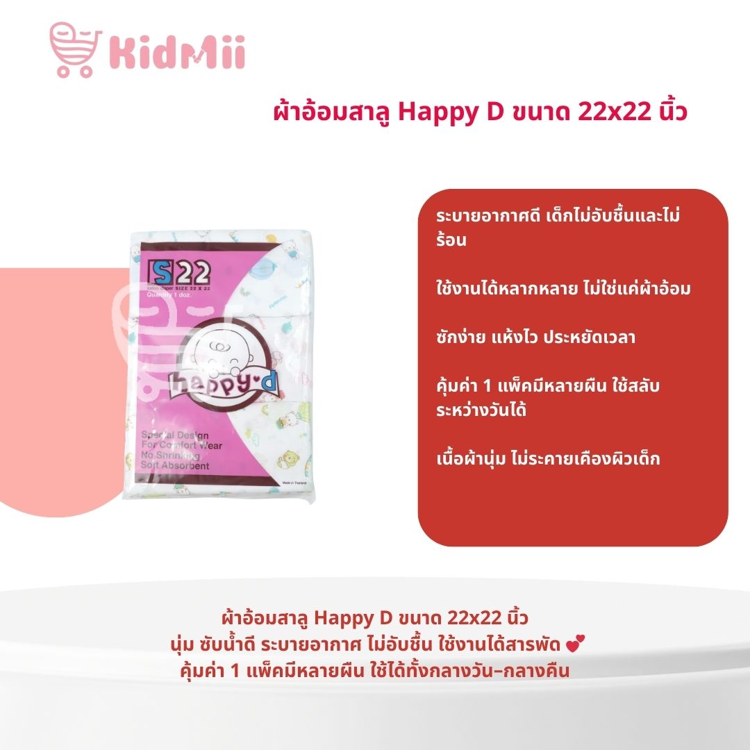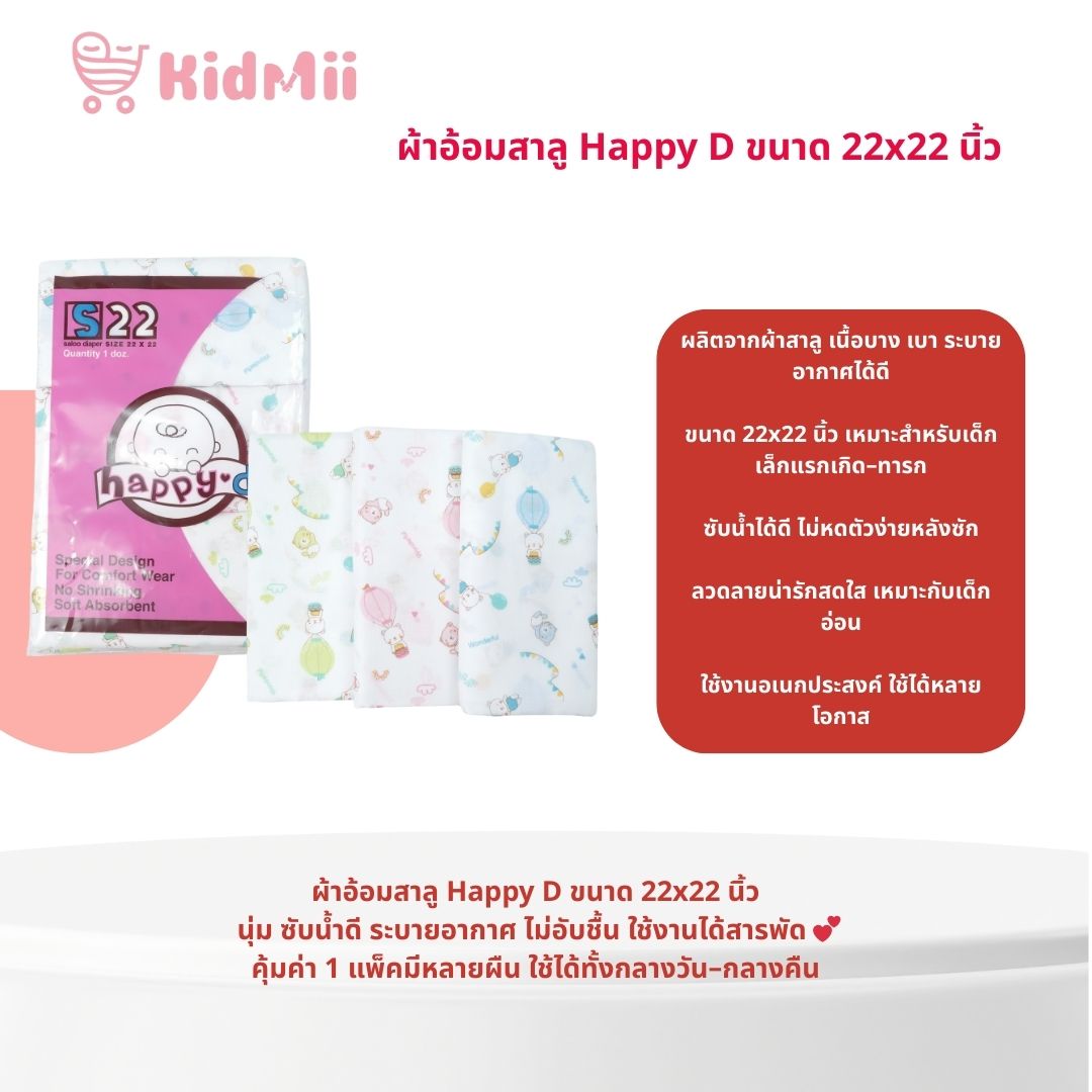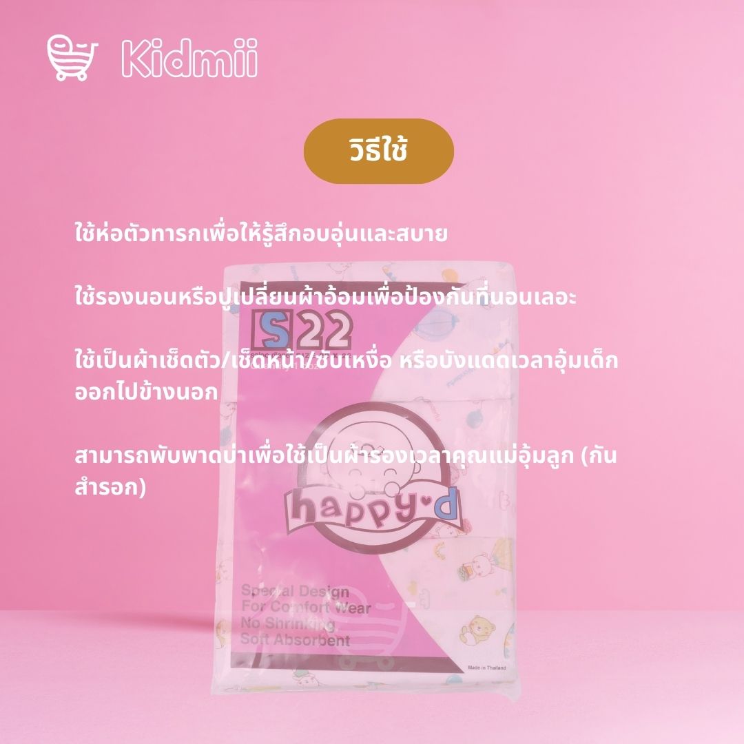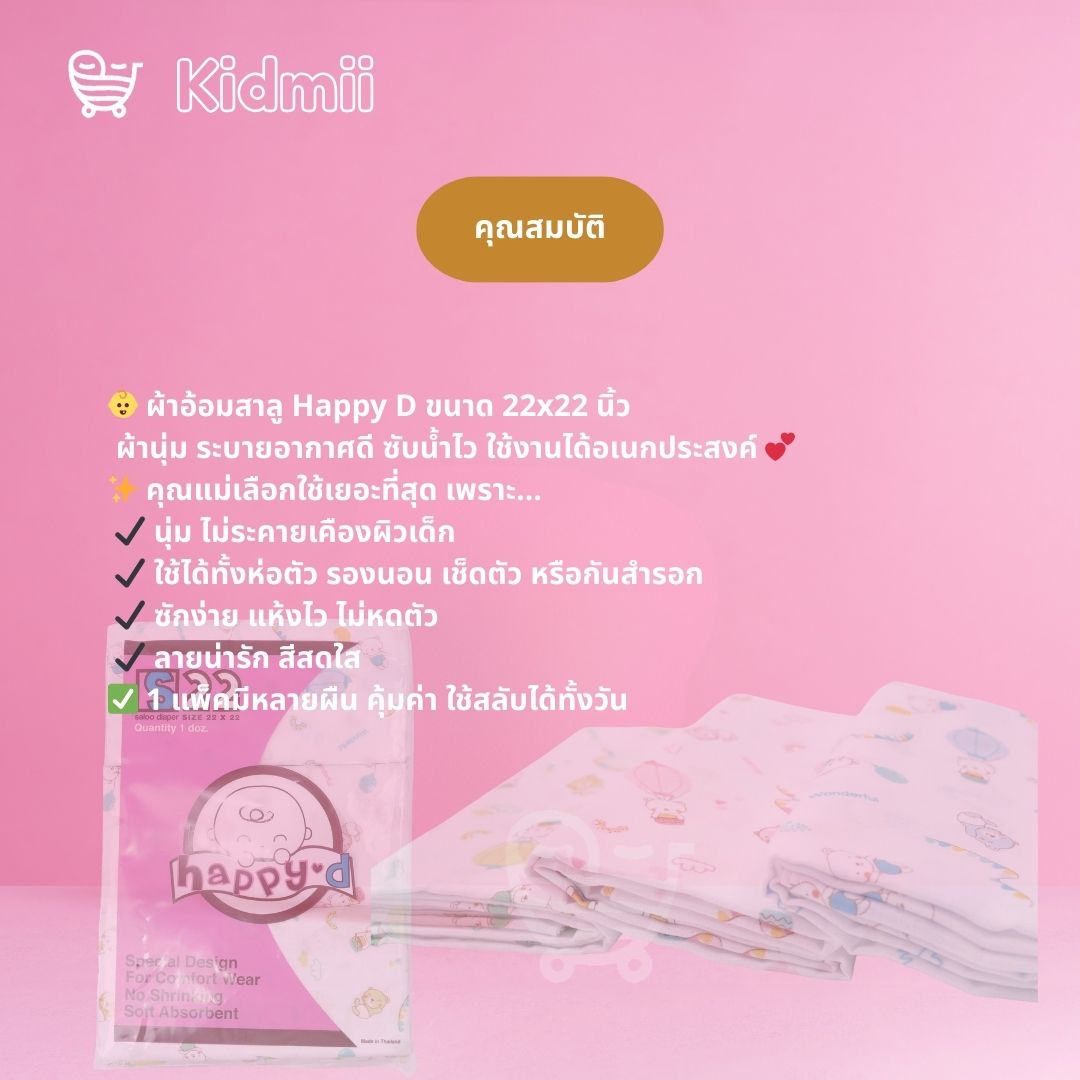 ผ้าอ้อมสาลูเด็กแรกเกิด Happy D ขนาด 22x22 นิ้ว 6 ชิ้น เกรด A