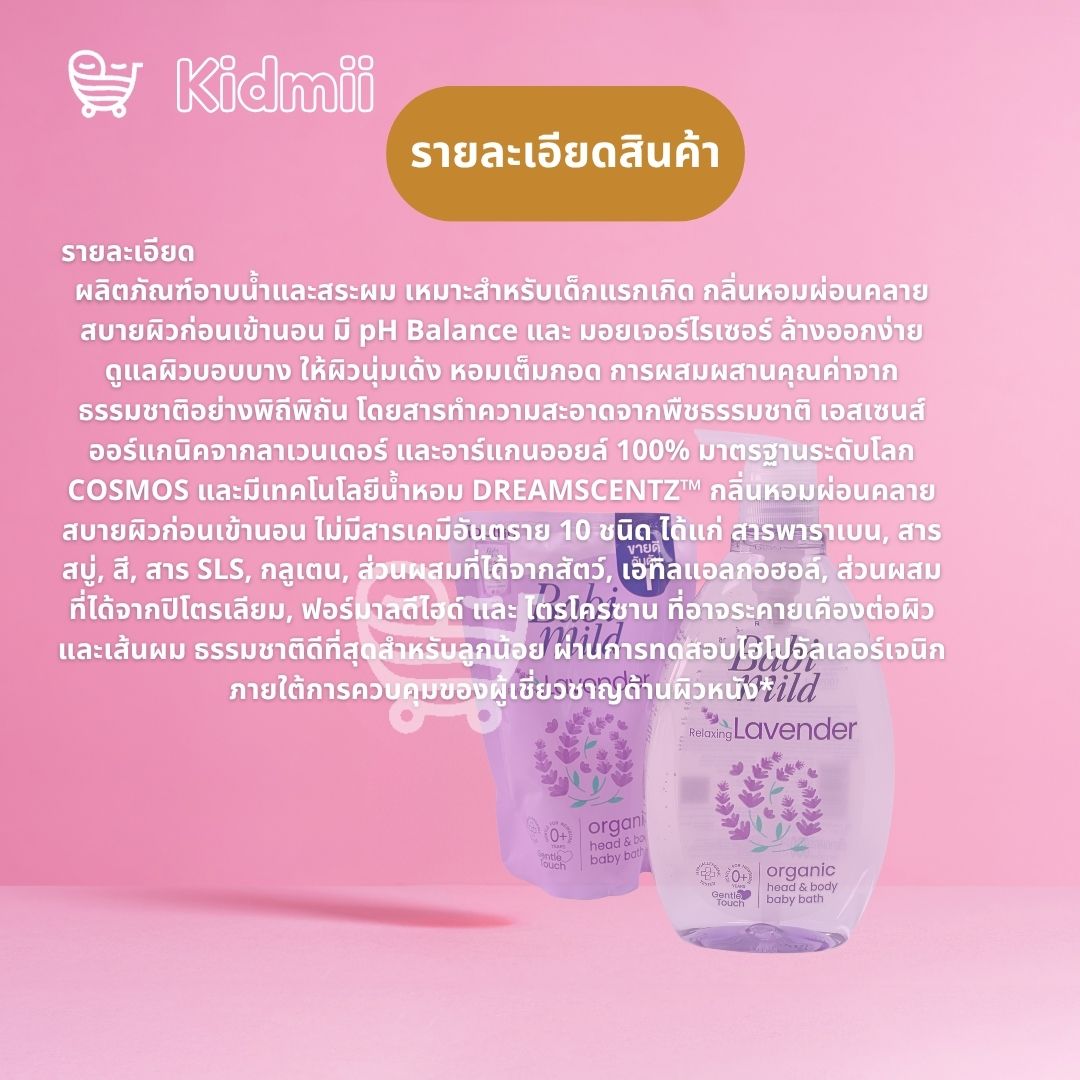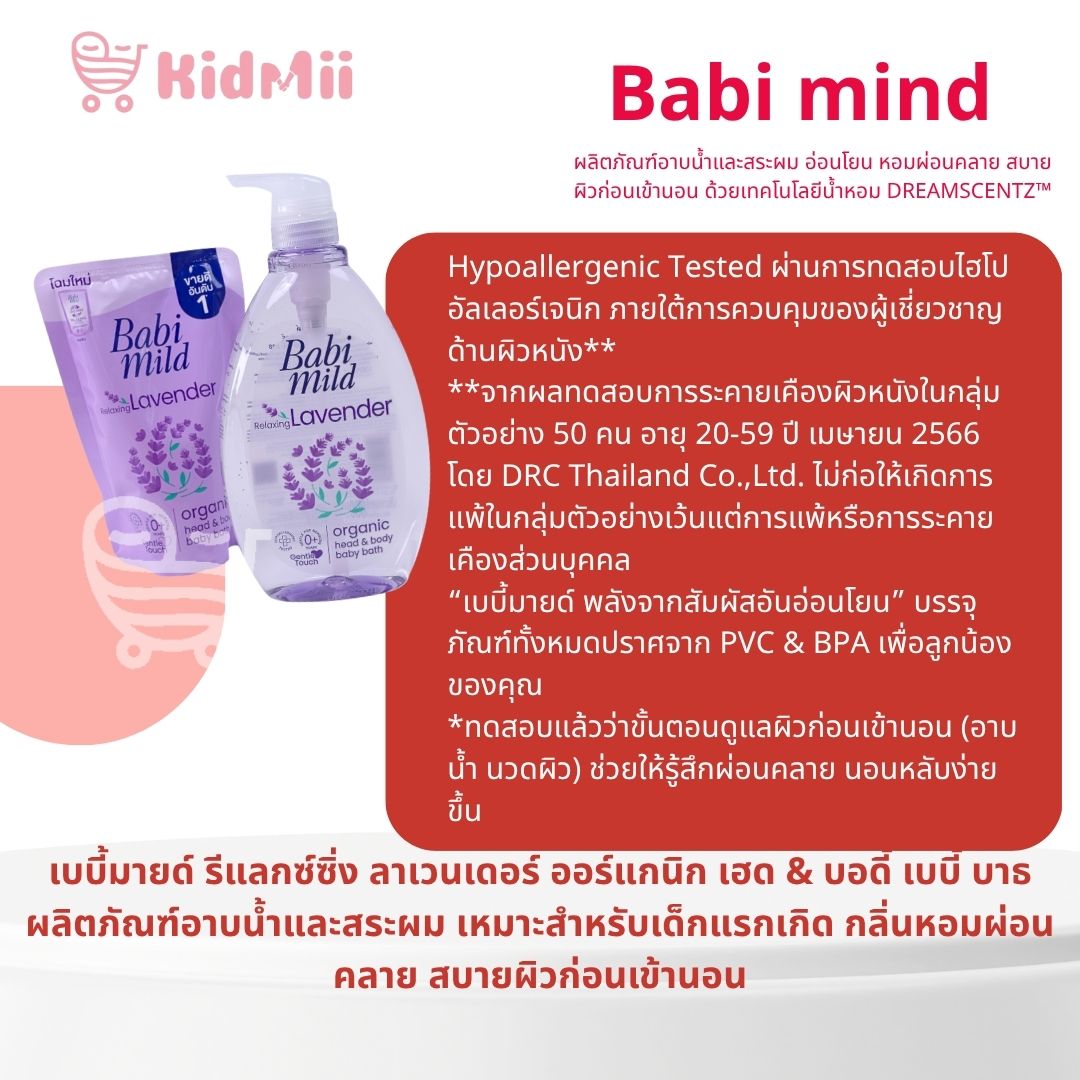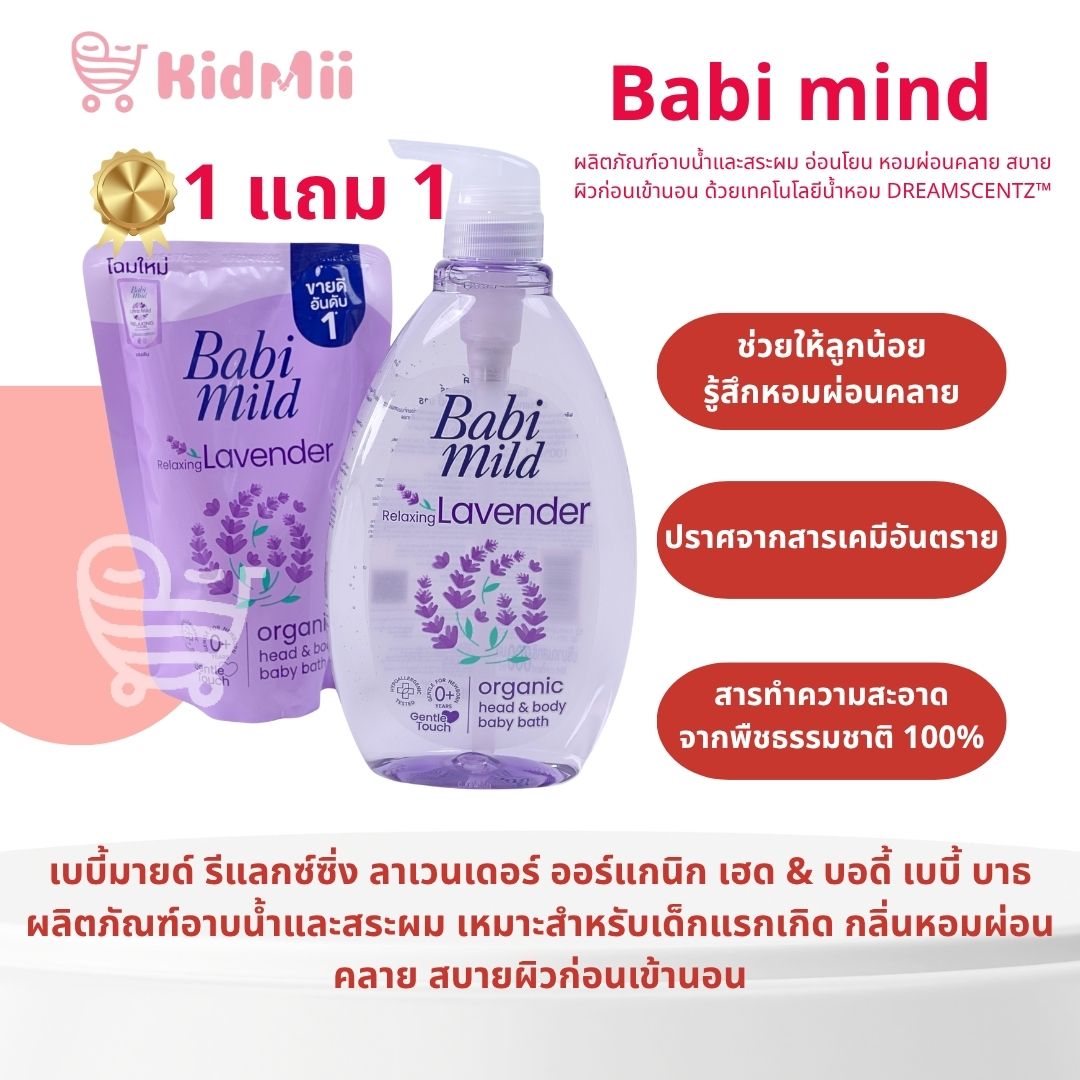 เบบี้มายด์ รีแลกซ์ซิ่ง ลาเวนเดอร์ ออร์แกนิก เฮด แอนด์ บอดี้ เบบี้ บาธ 800 มล. + รีฟิล 350 มล.