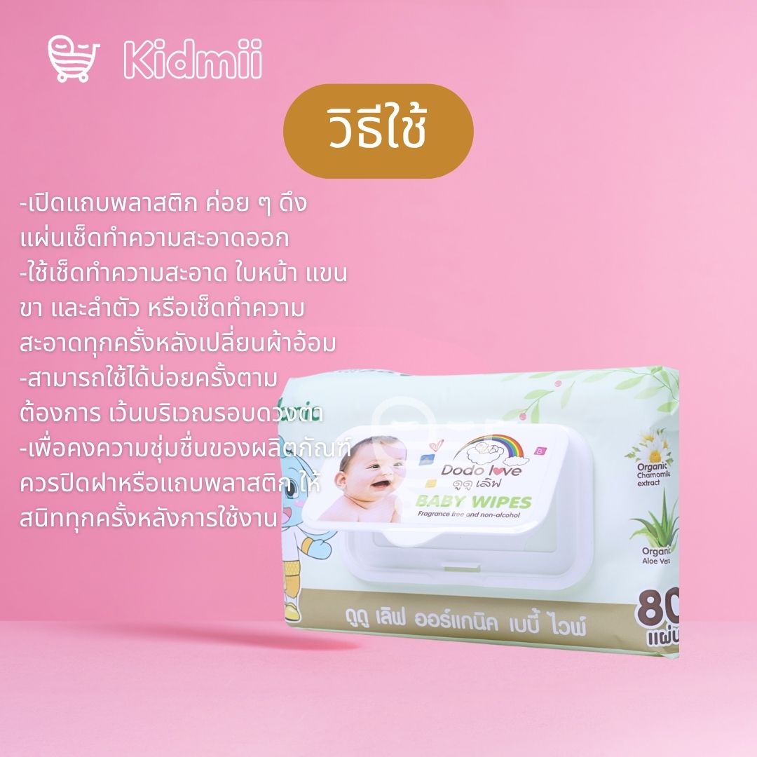 -ใช้เช็ดทำความสะอาด ใบหน้า แขน ขา และลำตัว หรือเช็ดทำความสะอาดทุกครั้งหลังเปลี่ยนผ้าอ้อม