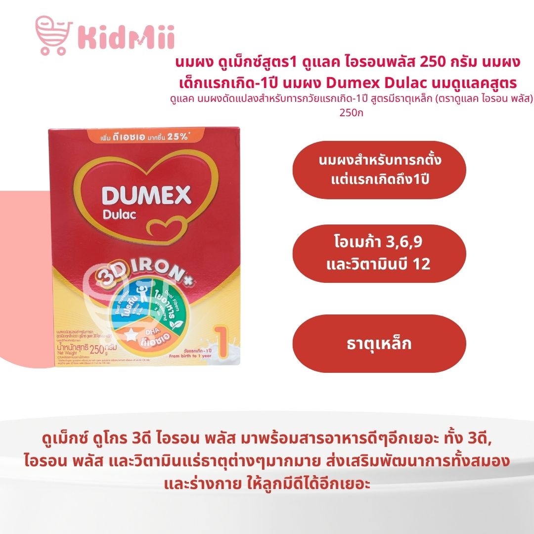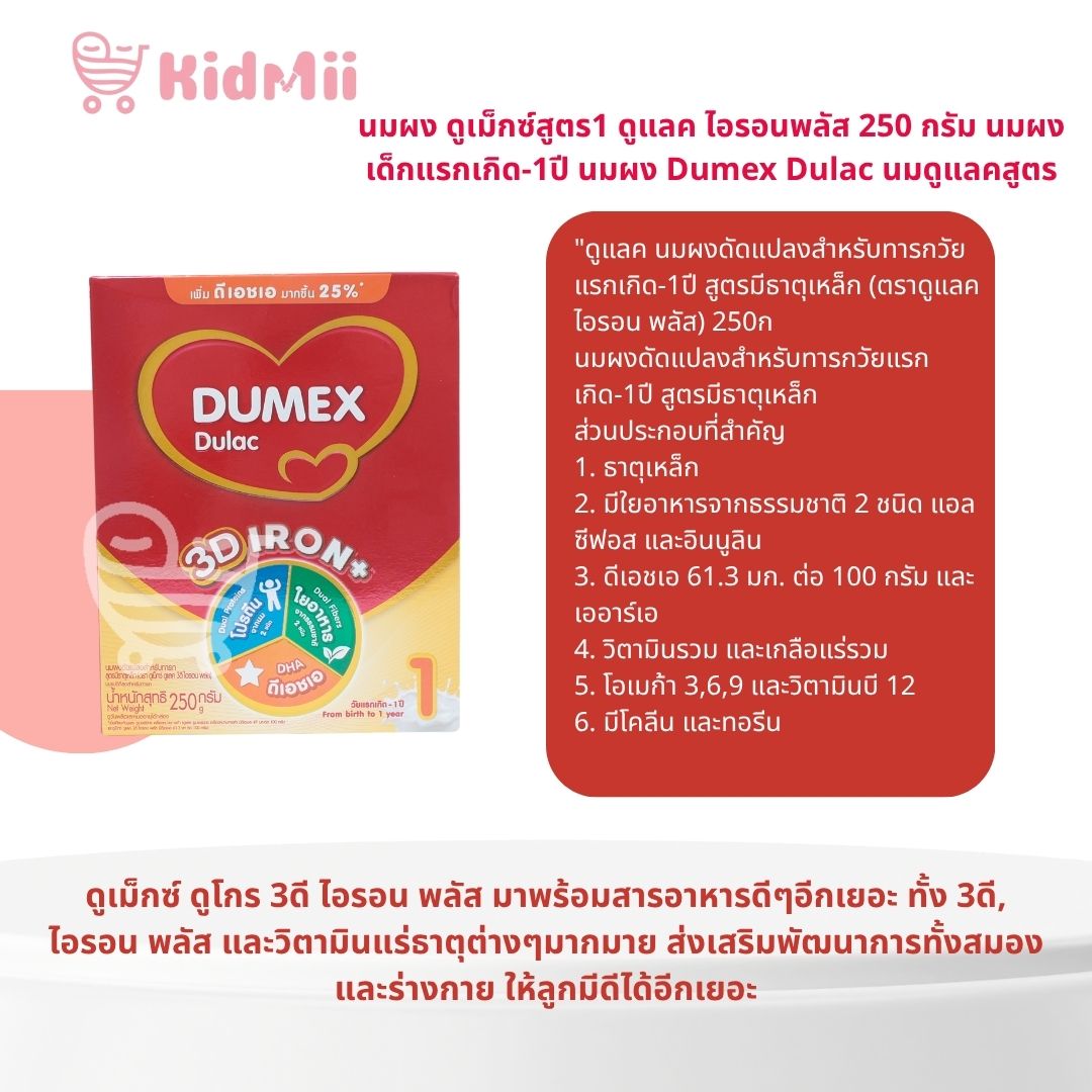 นมผง ดูเม็กซ์สูตร1 ดูแลค ไอรอนพลัส 250 กรัม นมผงเด็กแรกเกิด-1ปี นมผง Dumex Dulac นมดูแลคสูตร1