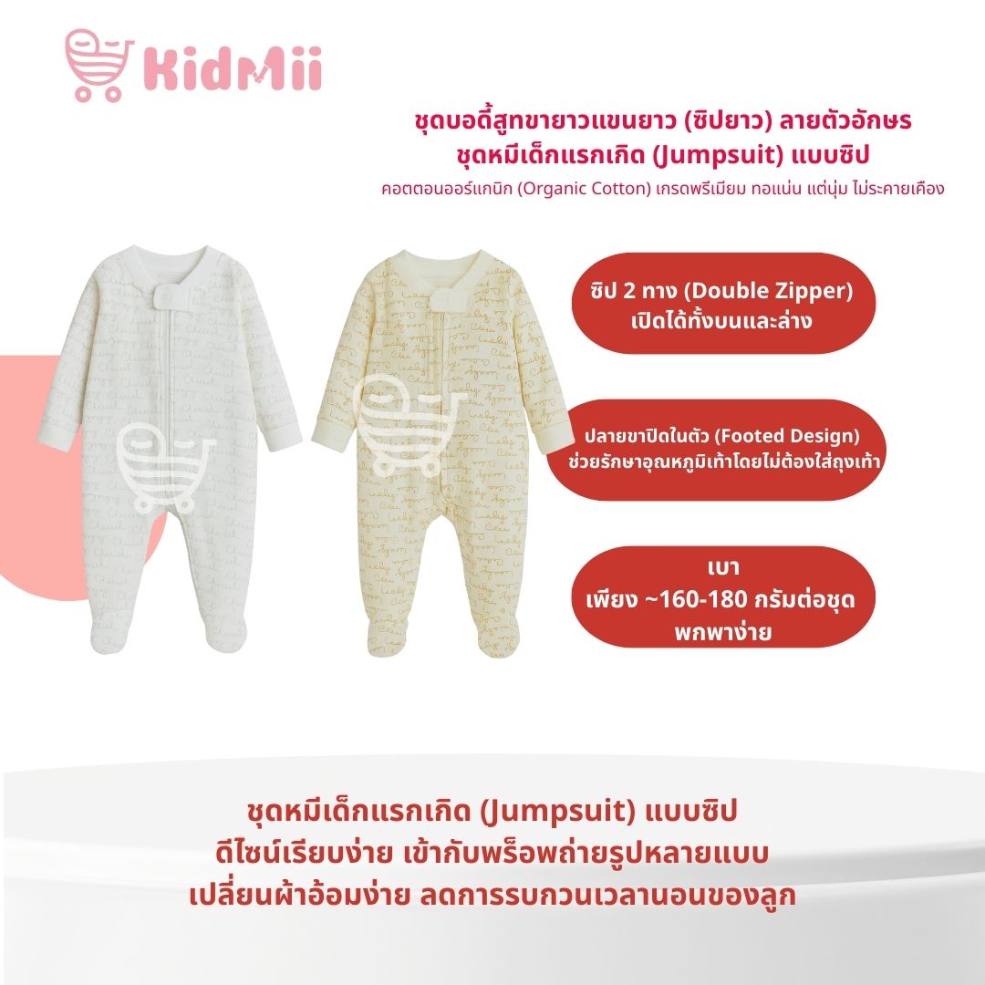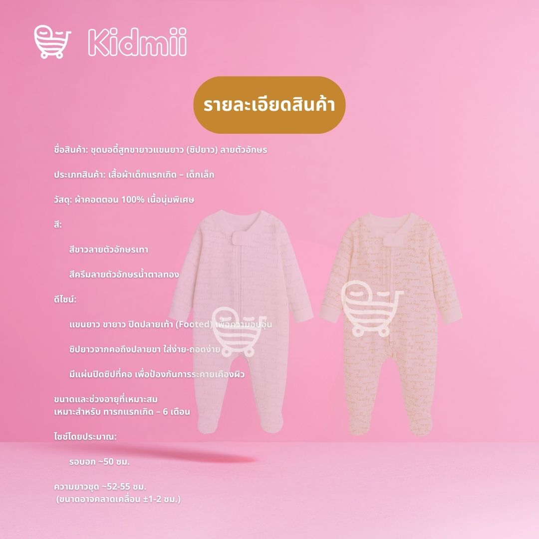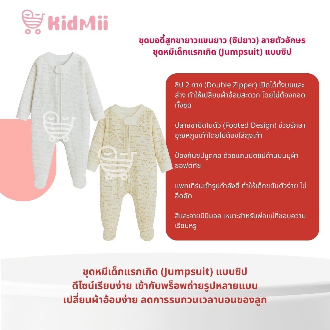 ชุดบอดี้สูทขายาวแขนยาว (ซิปยาว) ลายตัวอักษร