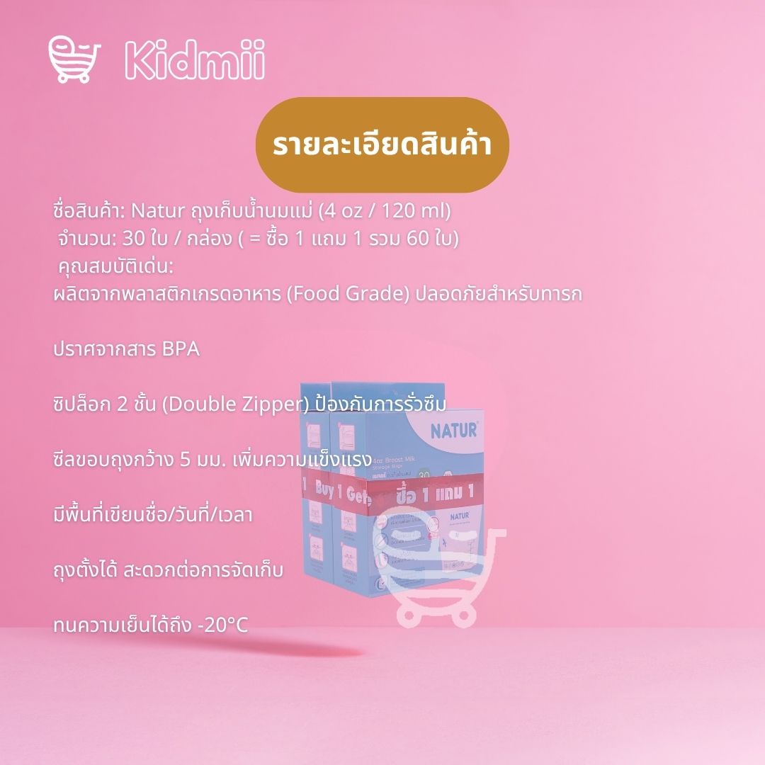 ถุงเก็บน้ำนมแม่ Natur (นาทูร์) 4 ออนซ์ (ขนาด 120 ml.) 1 แถม 1