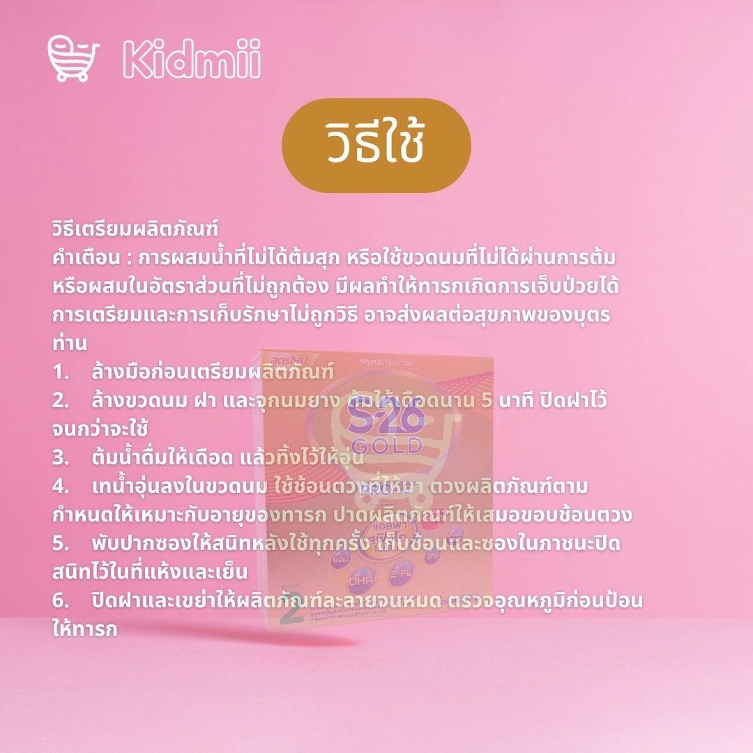 คำเตือน : การผสมน้ำที่ไม่ได้ต้มสุก หรือใช้ขวดนมที่ไม่ได้ผ่านการต้ม หรือผสมในอัตราส่วนที่ไม่ถูกต้อง มีผลทำให้ทารกและเด็กเล็กเกิดการเจ็บป่วยได้ การเตรียมและการเก็บรักษาไม่ถูกวิธี อาจส่งผลต่อสุขภาพของบุตรท่าน
