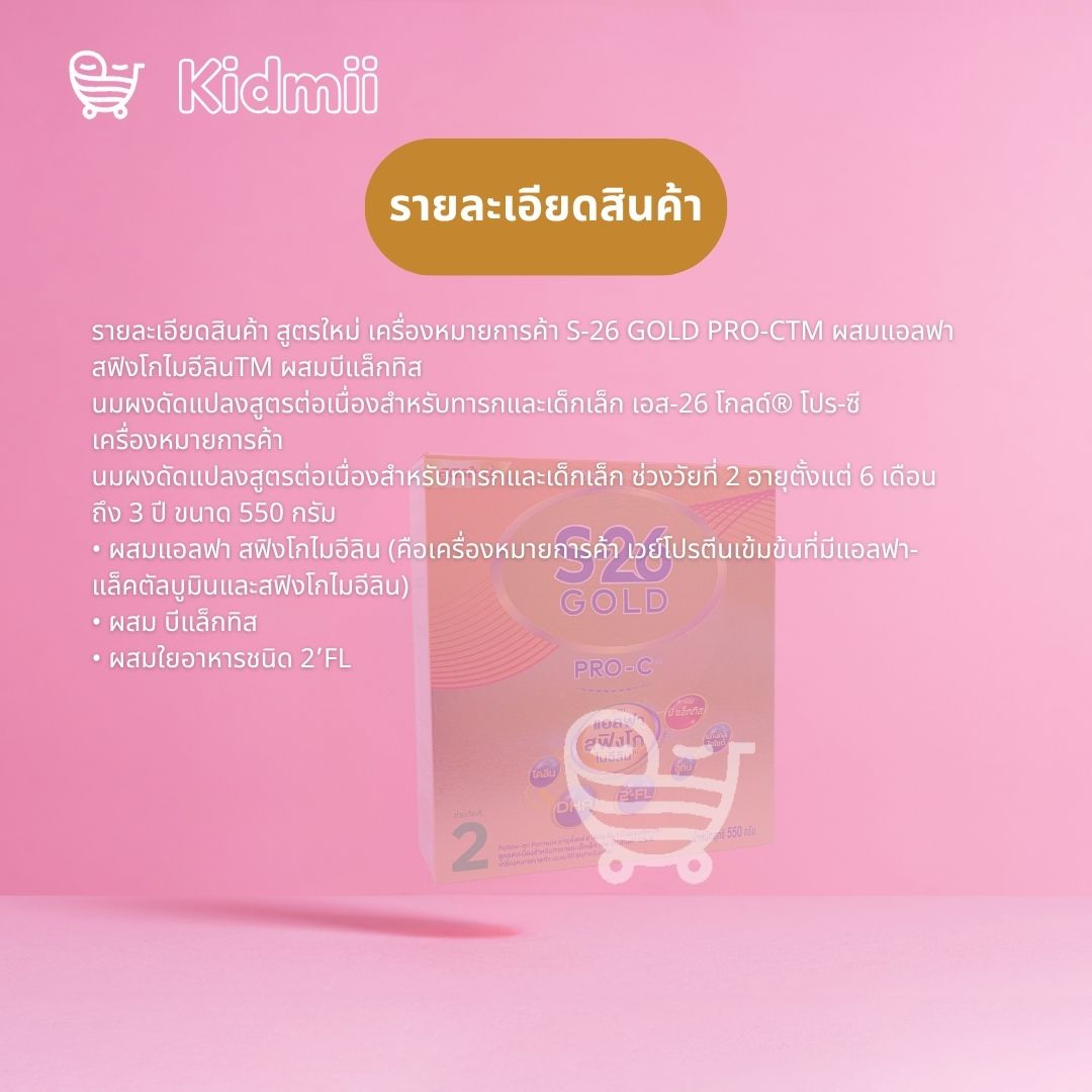อัพเดทล่าสุดเมื่อส่วนประกอบที่สำคัญ : นมผงพร่องมันเนย 36%, แลคโตส 28%, น้ำมันพืชผสม 17.2% (น้ำมันปาล์มโอลีอิน, น้ำมันเรพซีดที่มีกรดอีรูซิกต่ำ, น้ำมันทานตะวัน), เวย์โปรตีนเข้มข้นที่มีแอลฟา-แล็คตัลบูมินและสฟิงโกไมอีลิน 4.7%, ใยอาหารชนิดโอลิโกฟรุคโตส 4.2%, น้ำมันปลาที่ให้ดีเอชเอและเออาร์เอ 3.6%, วิตามินและเกลือแร่รวม 2.3%, 2’-ฟูโคซิลแลคโตส (2’-เอฟแอล) 0.24%, บิฟิโดแบคทีเรียม แล็กทิส 0.13%, นิวคลีโอไทด์รวม 0.043%, ทอรีน 0.003%, ลูทีน 0.001%, อิมัลซิไฟเออร์ (INS322(i)), สารป้องกันการเกิดออกซิเดชั่น (INS304, INS307b), สารควบคุมความเป็นกรด (INS330), สารช่วยพา (มอลโทเดกซ์ทริน)
