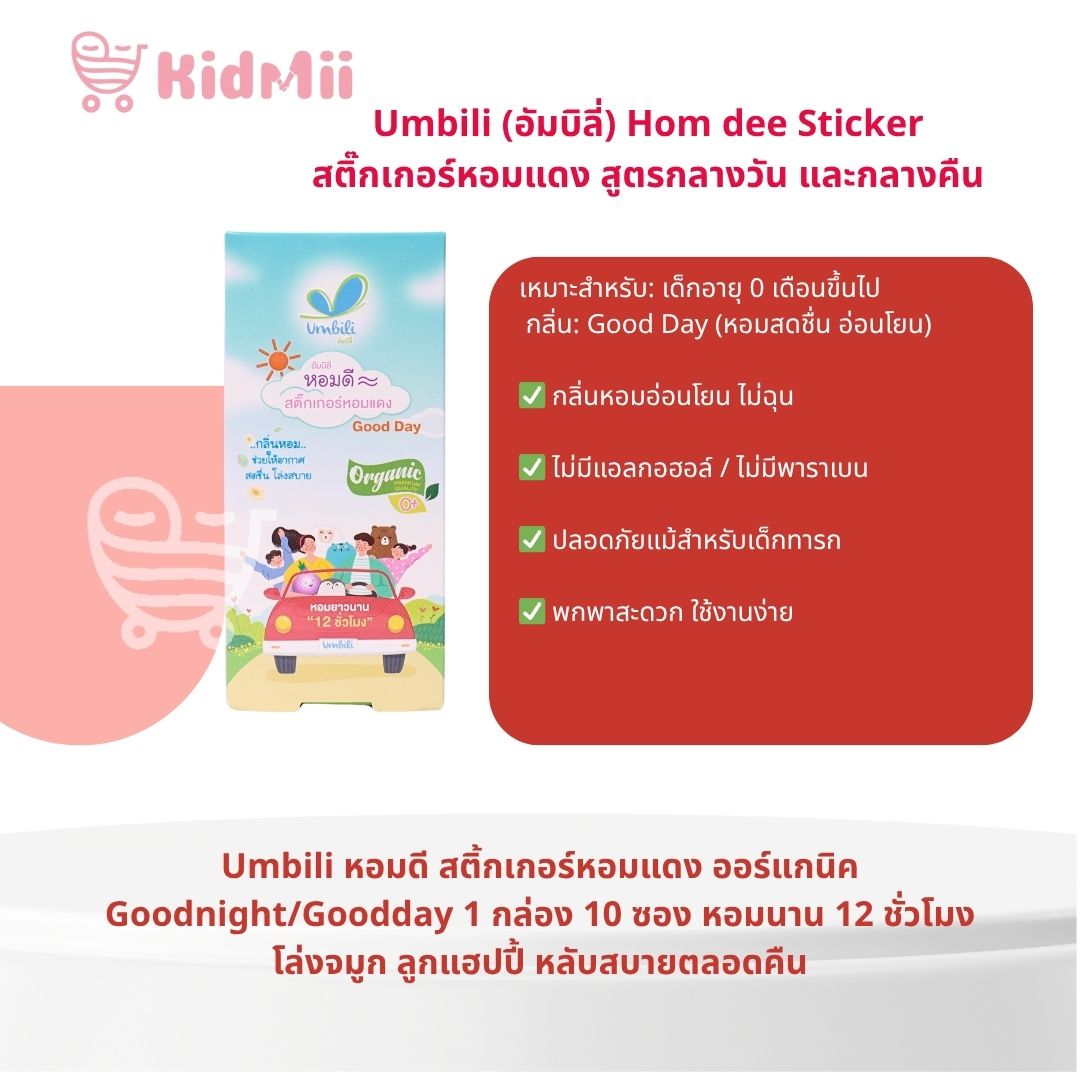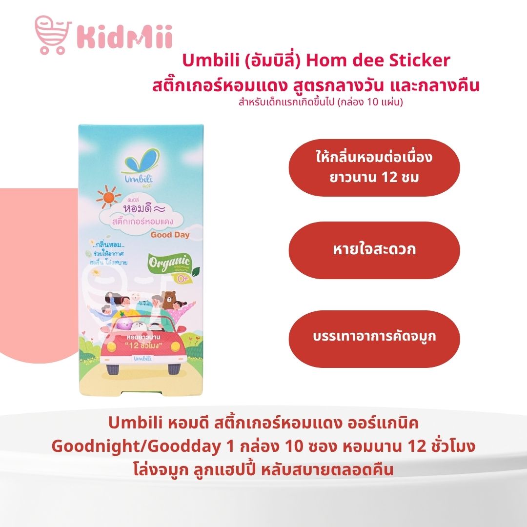 Umbili (อัมบิลี่) Hom dee Sticker สติ๊กเกอร์หอมแดง สูตรกลางวัน และกลางคืน สำหรับเด็กแรกเกิดขึ้นไป (กล่อง 10 แผ่น)