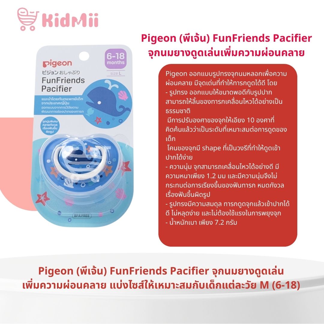 Pigeon (พีเจ้นท์) FunFriends Pacifier จุกนมยางดูดเล่นเพิ่มความผ่อนคลาย แบ่งไซส์ให้เหมาะสมกับเด็กแต่ละวัย M (6-18)