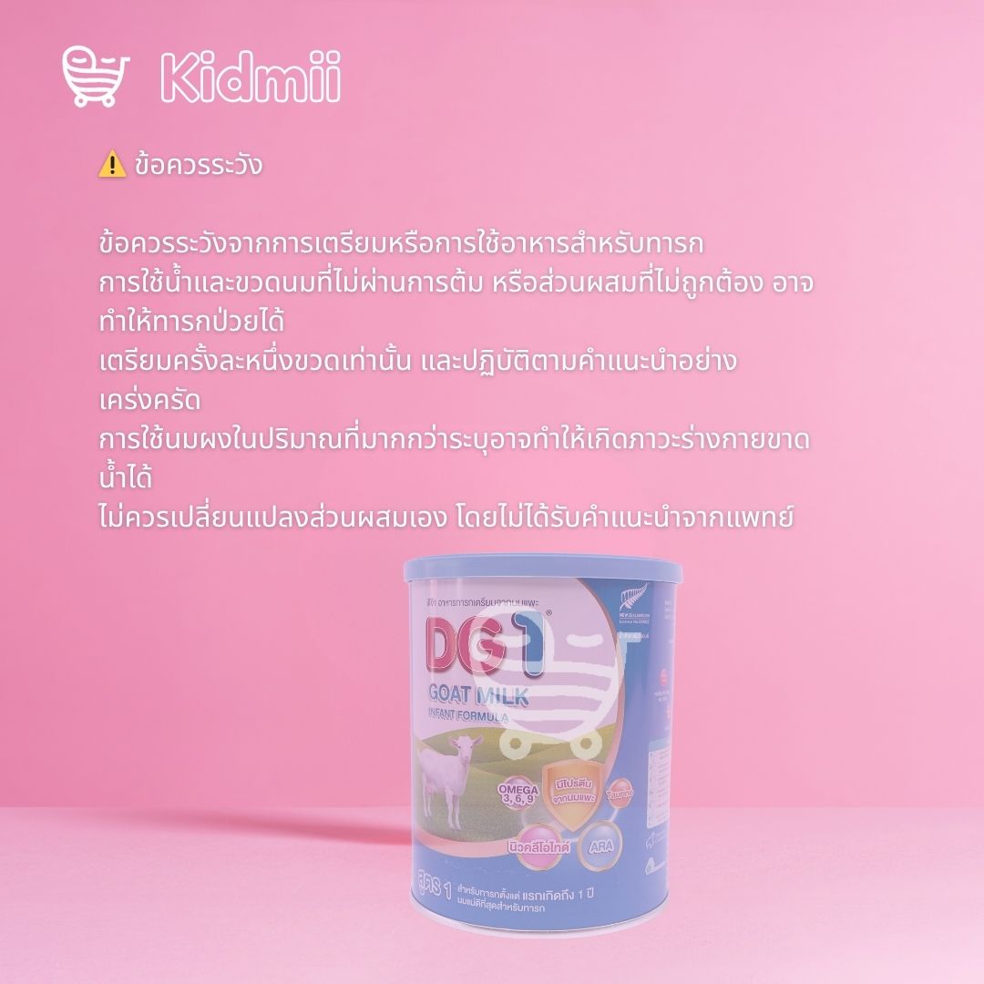 • การใช้นมผงในปริมาณที่มากกว่าระบุอาจทำให้เกิดภาวะร่างกายขาดน้ำได้