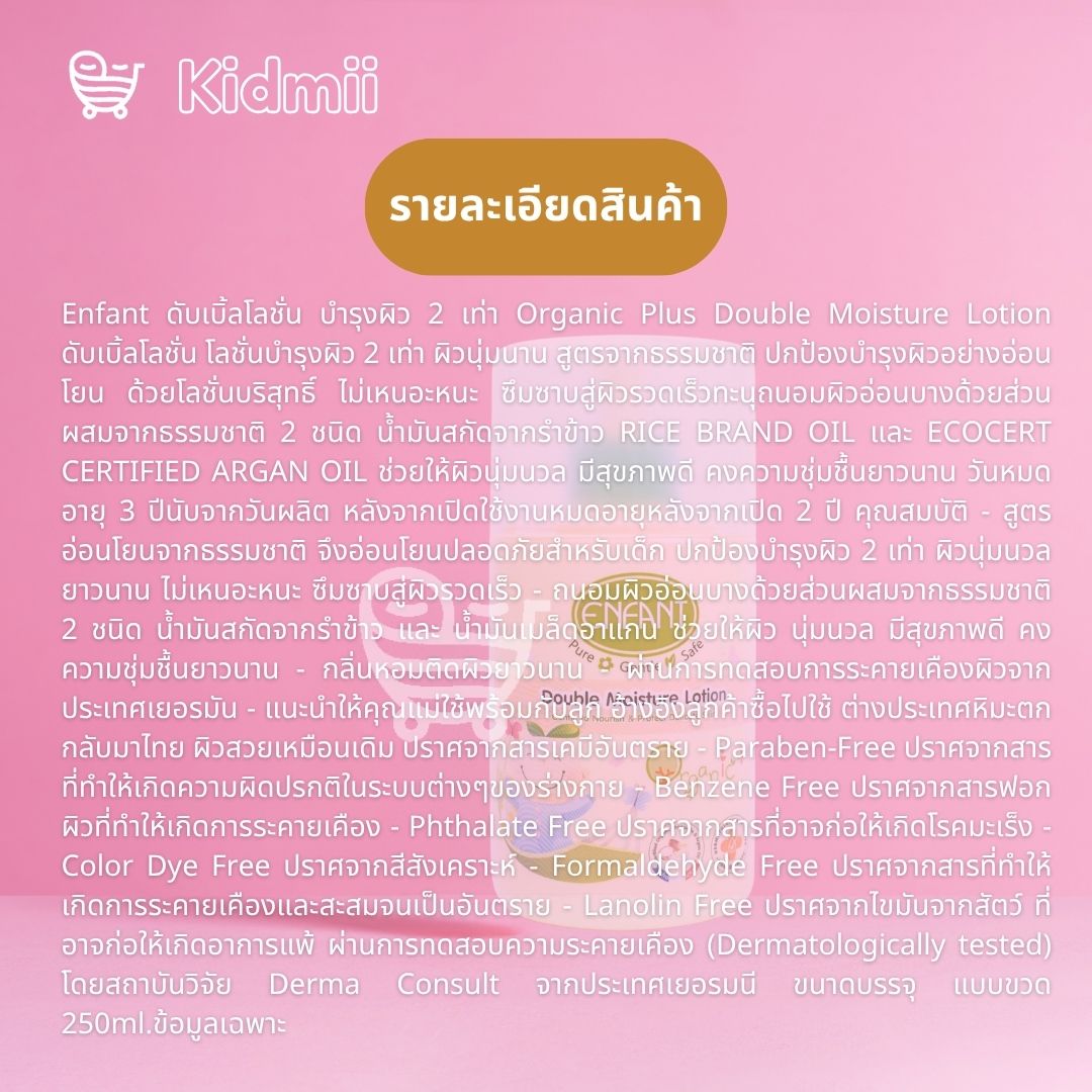 ENFANT(อองฟองต์) Organic Plus Double Moisture Lotion ดับเบิ้ล มอยส์เจอร์ โลชั่น สูตรเนื้อครีมเข้มข้น 250 ml.