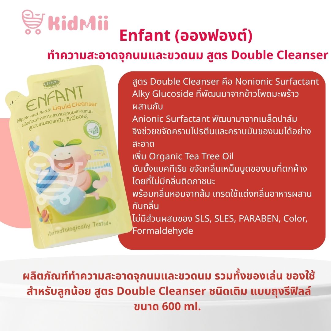 อัพเดทล่าสุดเมื่อข้อมูลผลิตภัณฑ์ Enfant (อองฟองต์) ผลิตภัณฑ์ทำความสะอาดจุกนมและขวดนม Double Cleanser 600ml