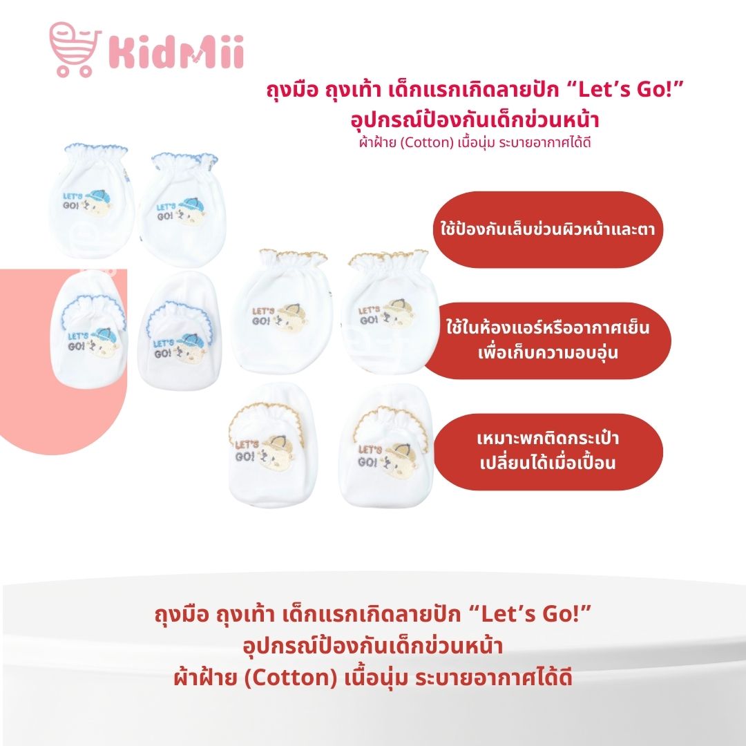 ชื่อสินค้า: ถุงมือเด็กแรกเกิดลายปัก “Let’s Go!”
